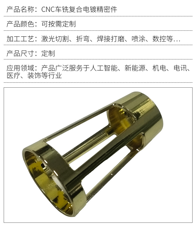 商品名称:定制CNC车铣复合电镀精密件 cnc非标零件电子五金件来图来样