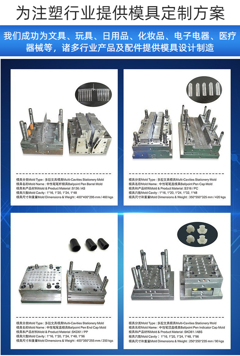 电子笔筒模具 多腔笔模具 开模注塑定制 注塑模具厂家