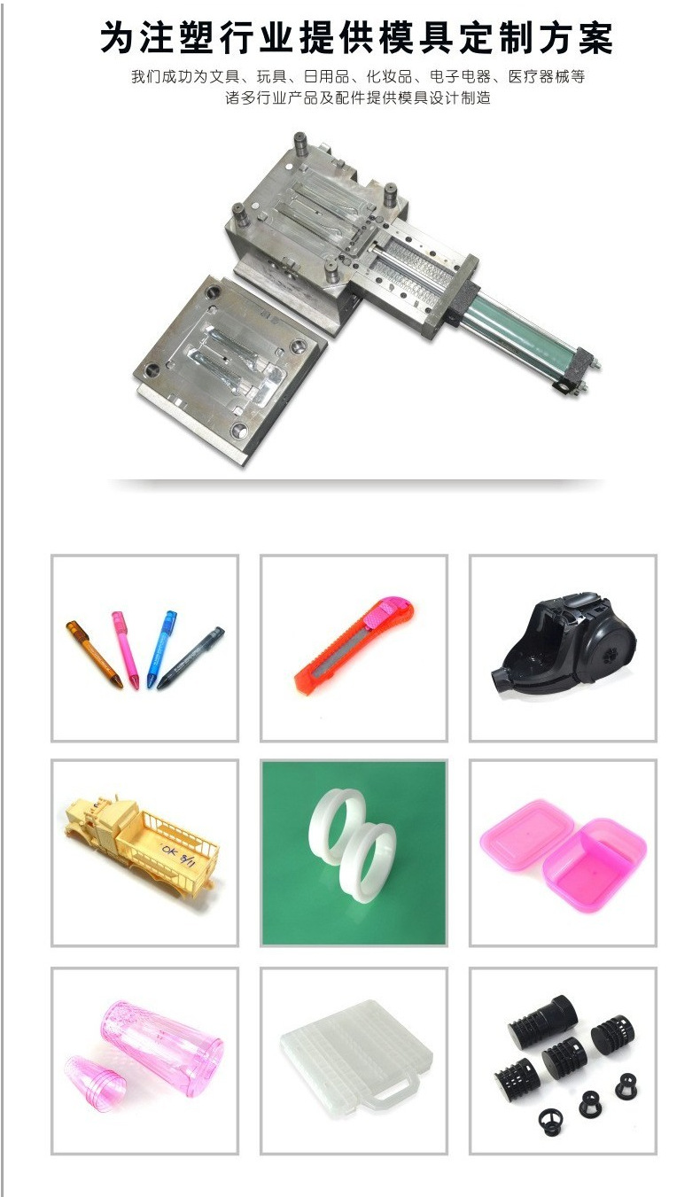 主要加工设备:钻孔机、CNC、慢走丝、磨床、火花机(普通/镜面)、省模、组模、注塑机