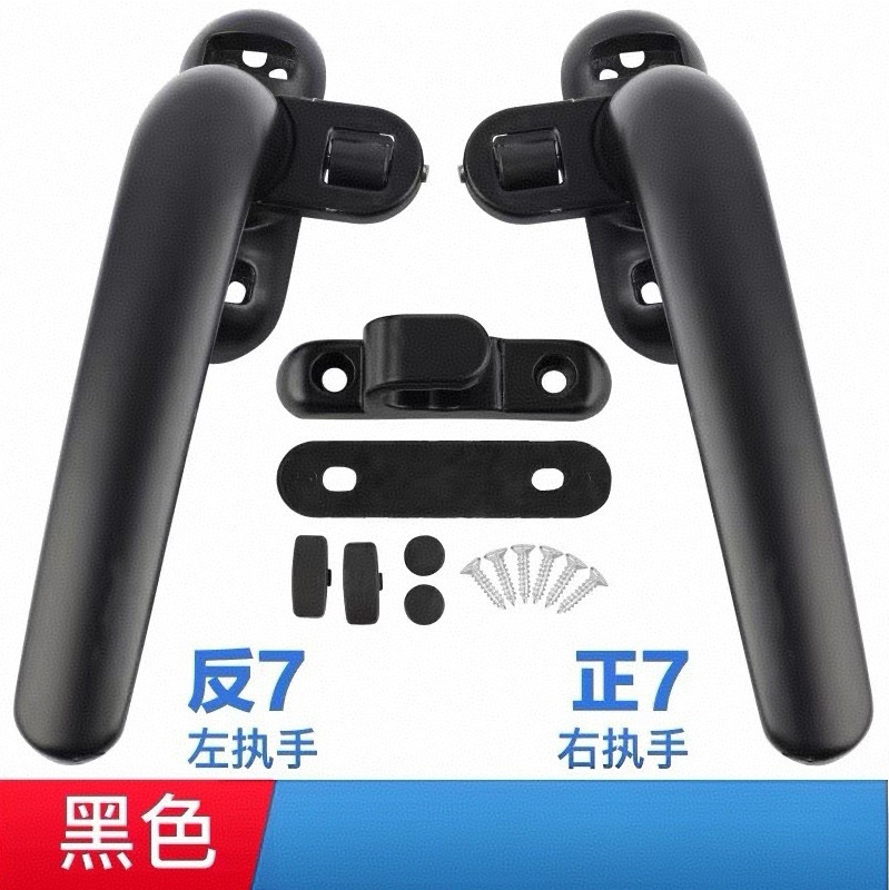 商品名称:七字执手铝合金推拉门把手多点月牙锁五金门窗限位器厂家直供