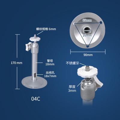 商品名称:ZSX-04铝合金万向监控支架户外螺杆立杆摄像机支架设备厂家批发厚