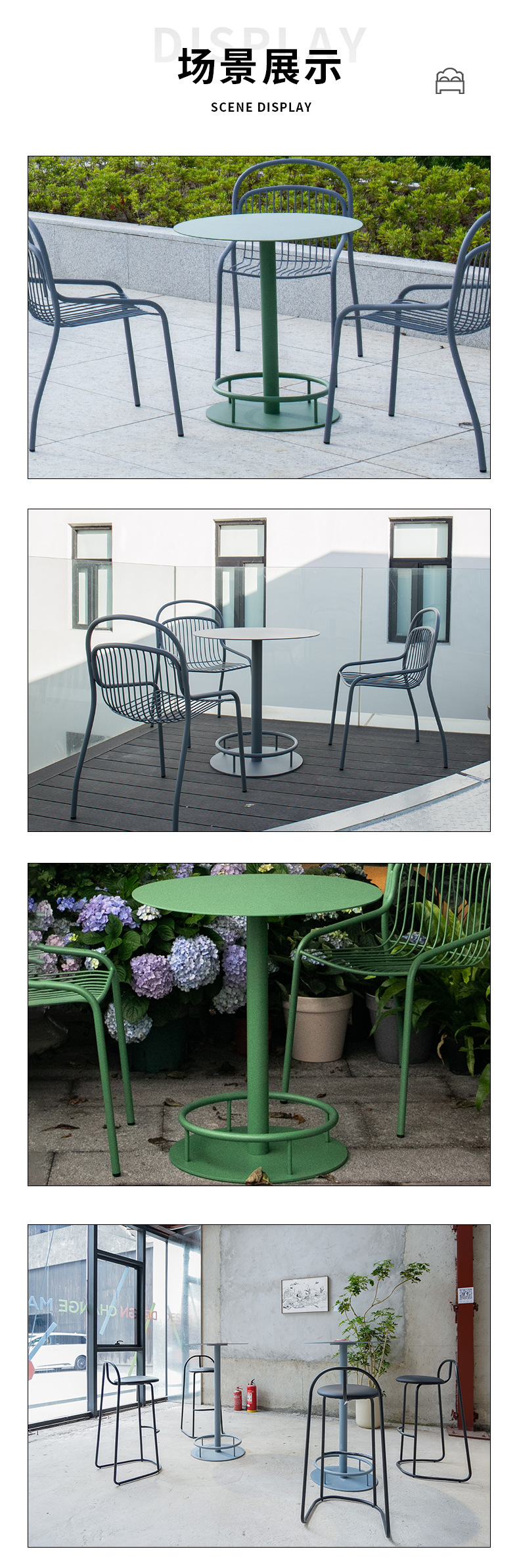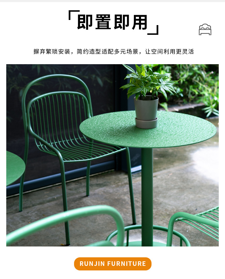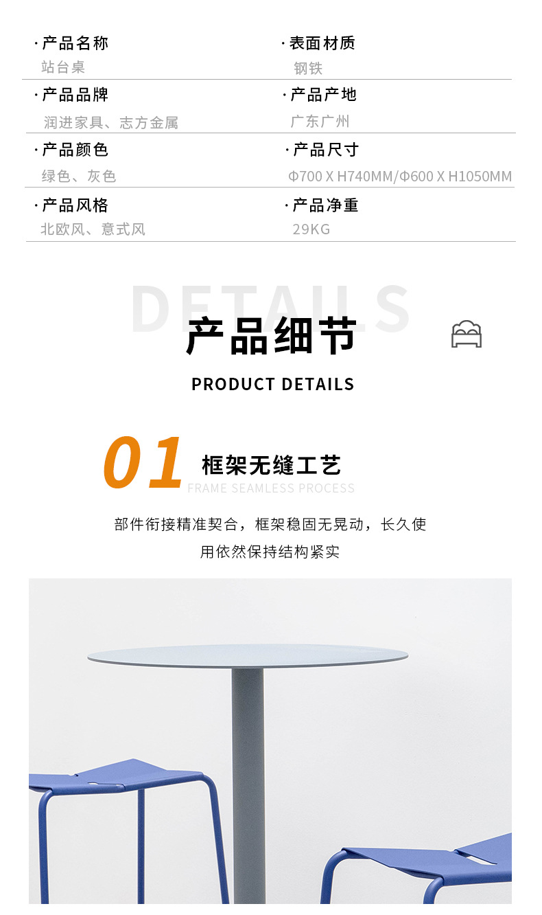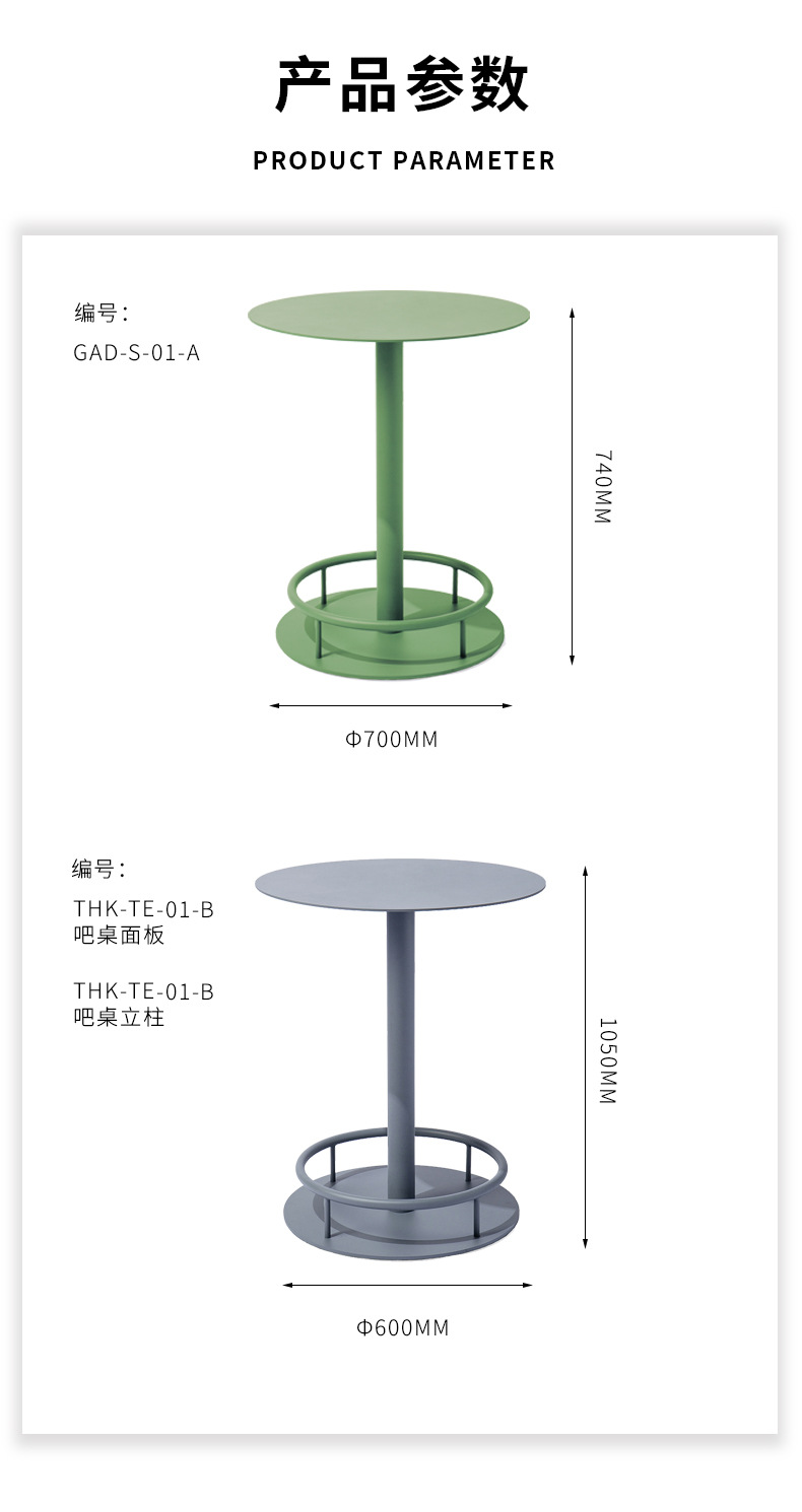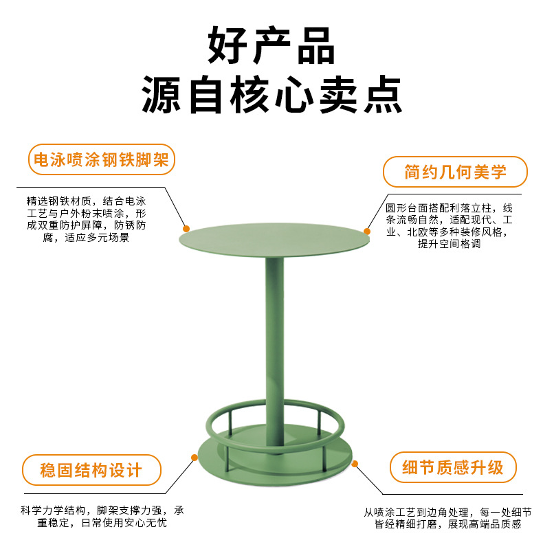 商品名称:铁艺户外花园休闲站台桌咖啡厅烘焙店露天小圆桌金属高脚桌椅定制