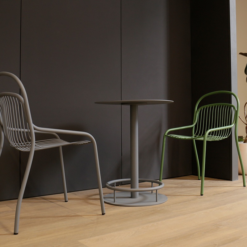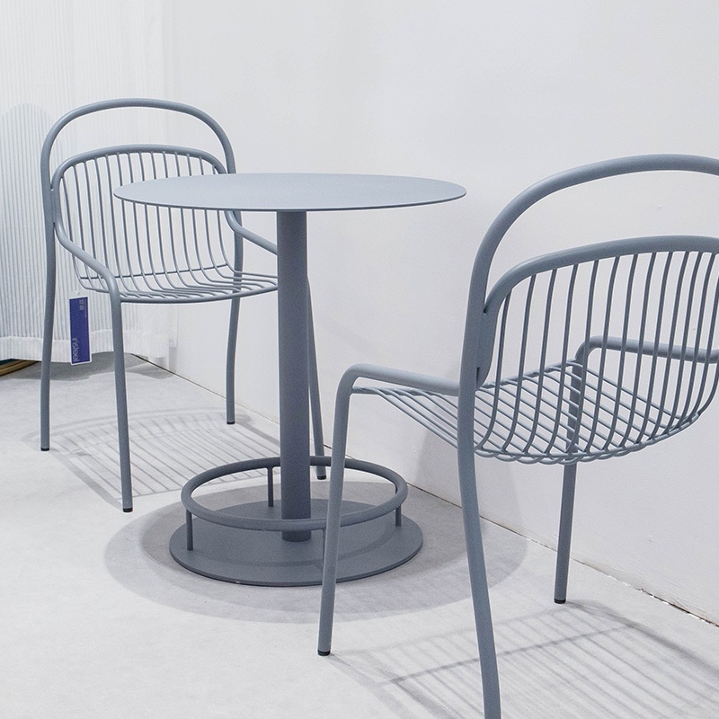 铁艺户外花园休闲站台桌咖啡厅烘焙店露天小圆桌金属高脚桌椅定制