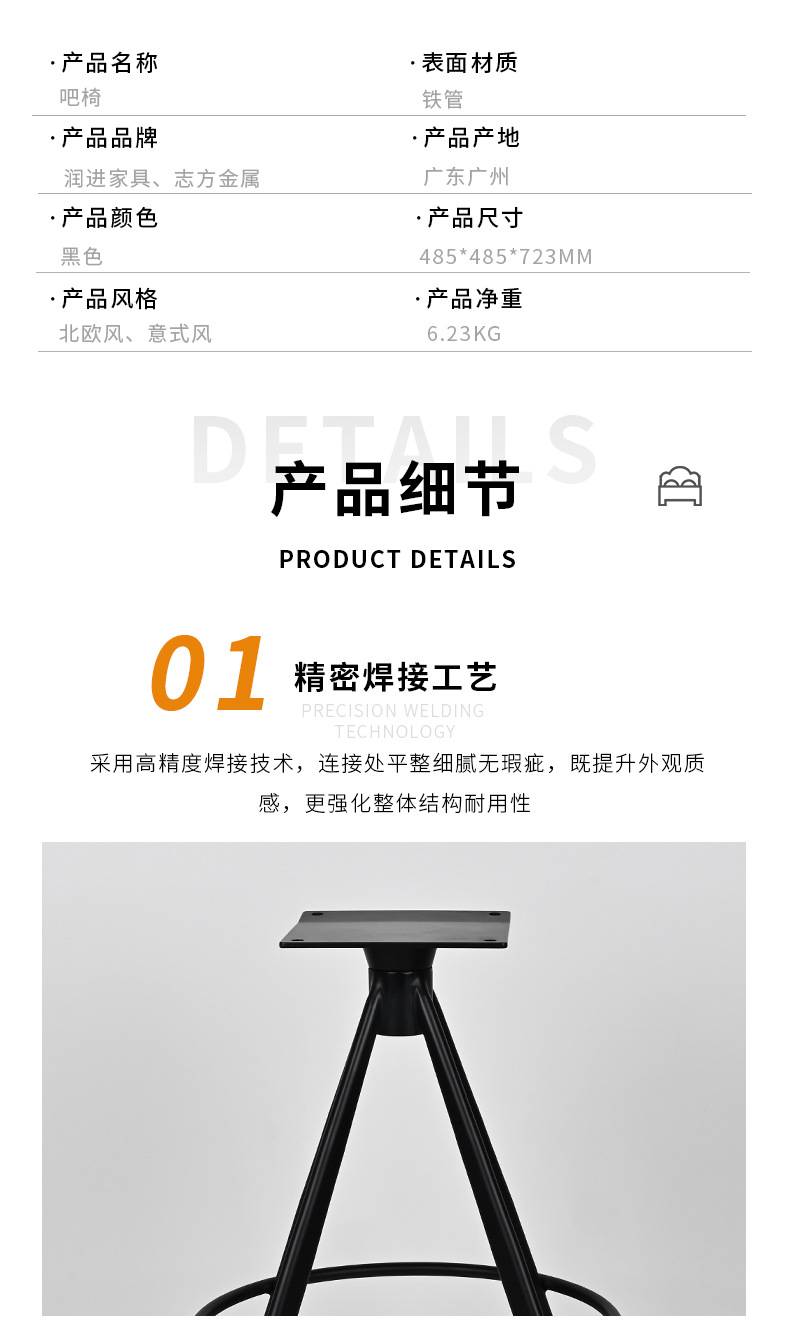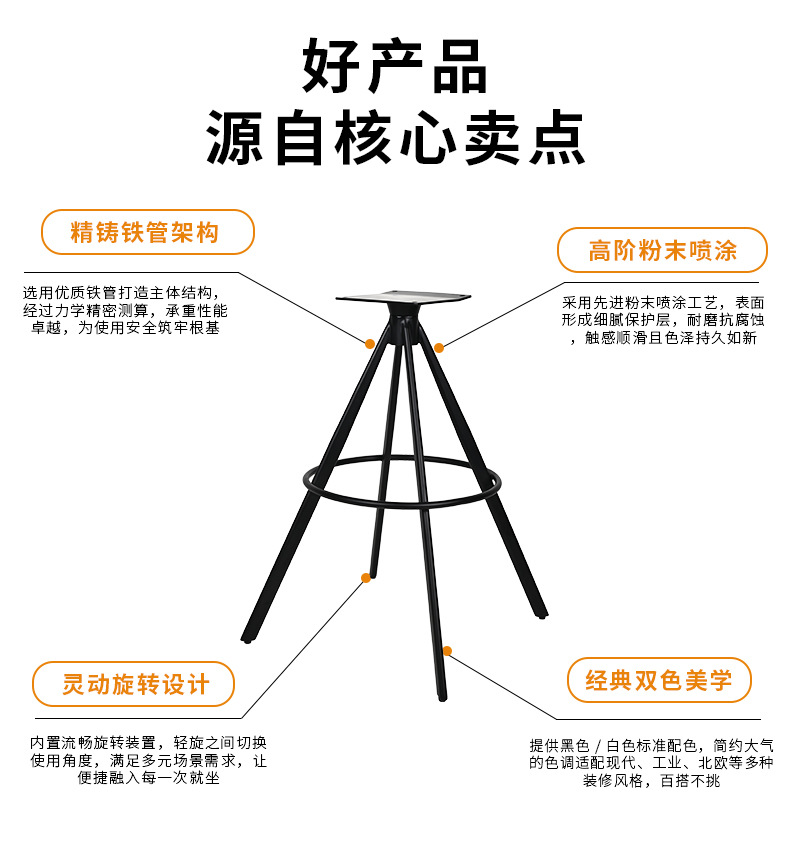 商品名称:可旋转吧椅支架定制承重加厚吧台椅架铁艺金属椅子高脚支架厂家