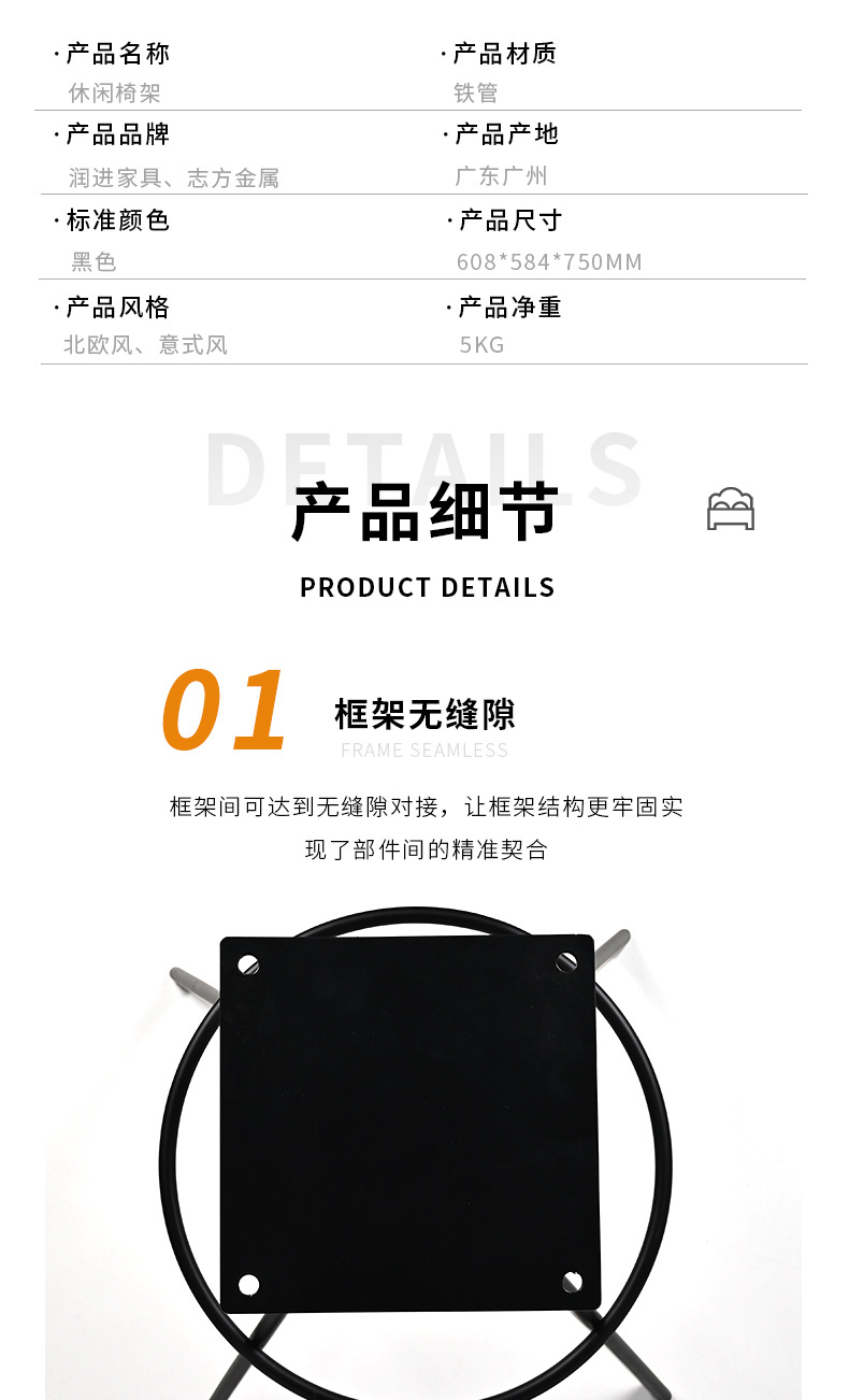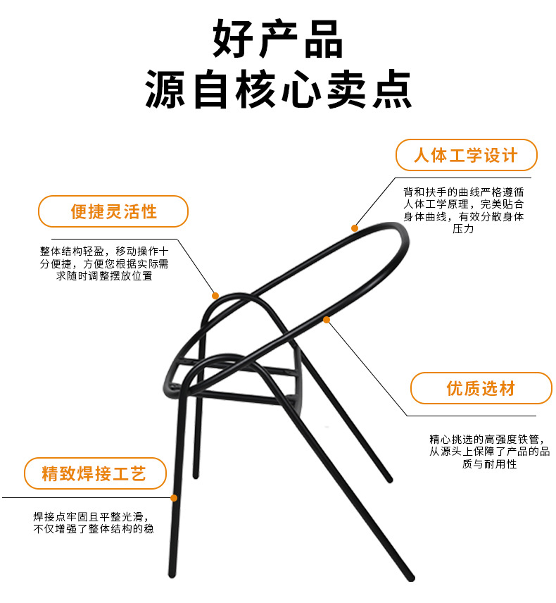 商品名称:咖啡厅餐厅椅子铁艺支架家用客厅椅子桌腿支架办公休闲椅厂家定制