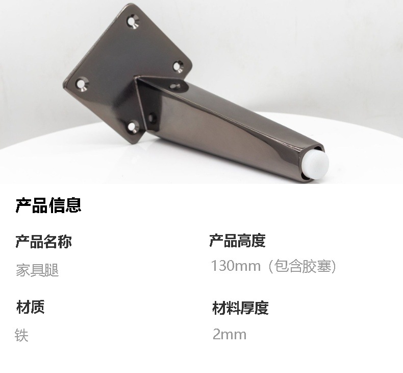 商品名称:厂家直销轻奢家具偏斜锥脚沙发茶几桌脚五金加厚支撑腿床头柜承重