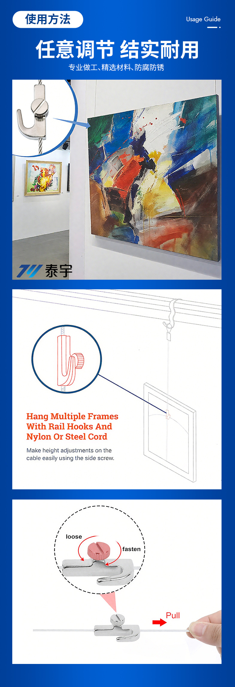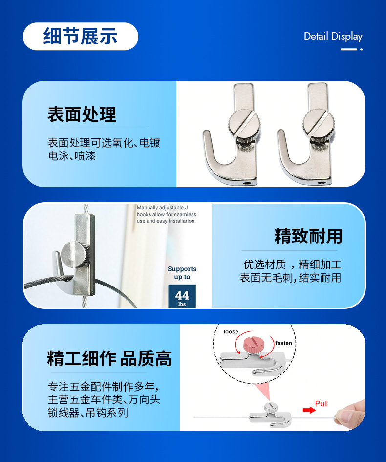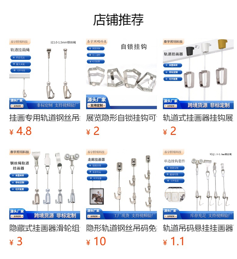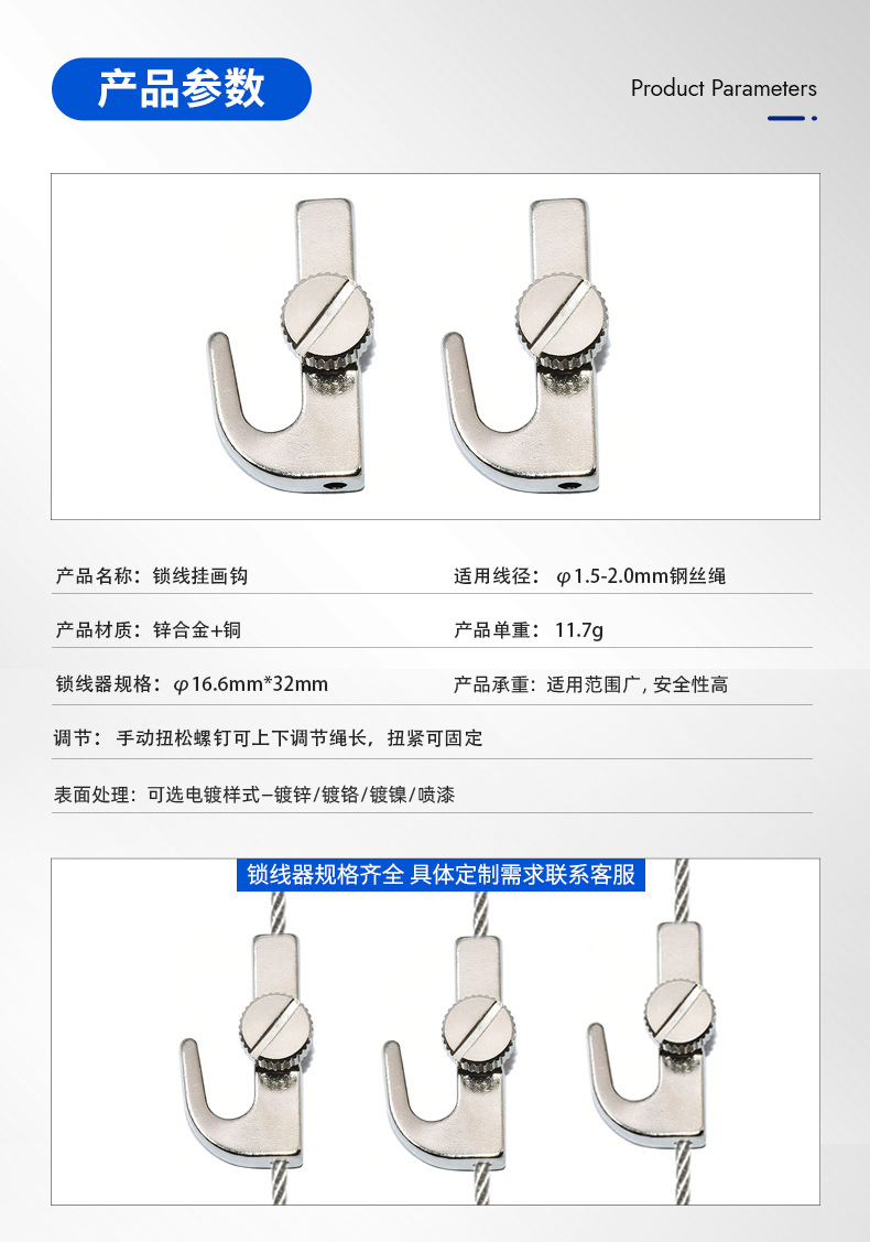 商品名称:轨道挂画器钢丝绳自锁收紧器挂镜线可调节移动吊码滑轮导轨槽配件