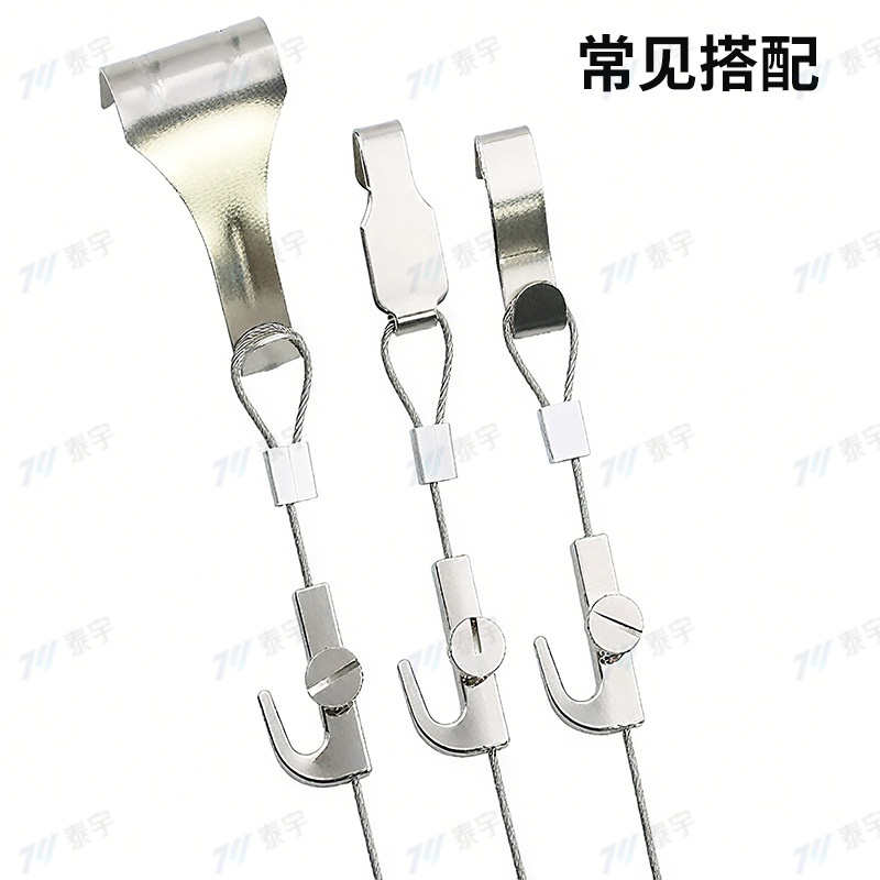 轨道挂画器钢丝绳自锁收紧器挂镜线可调节移动吊码滑轮导轨槽配件
