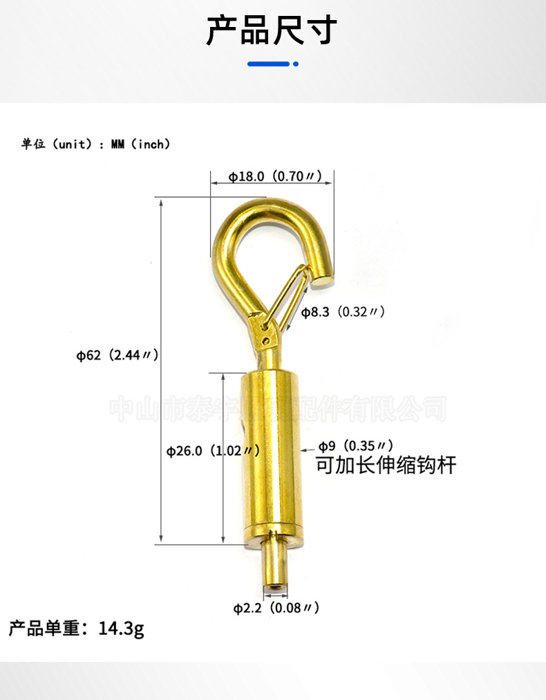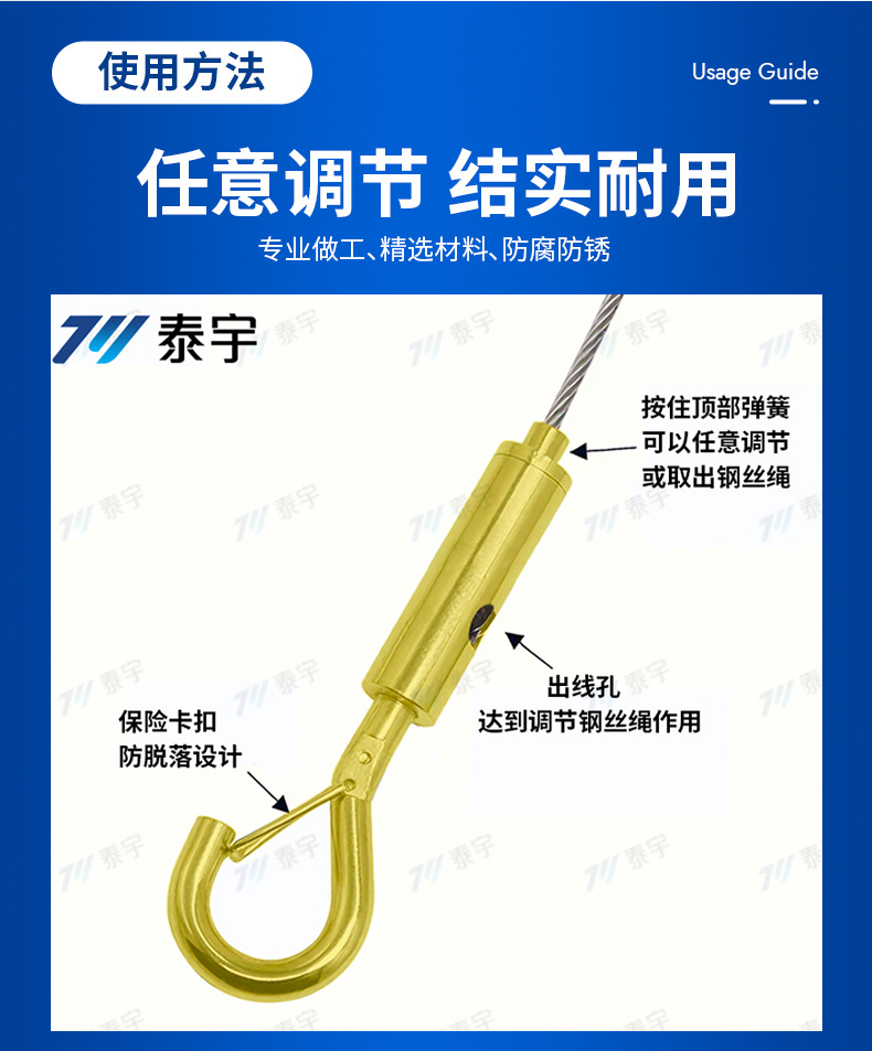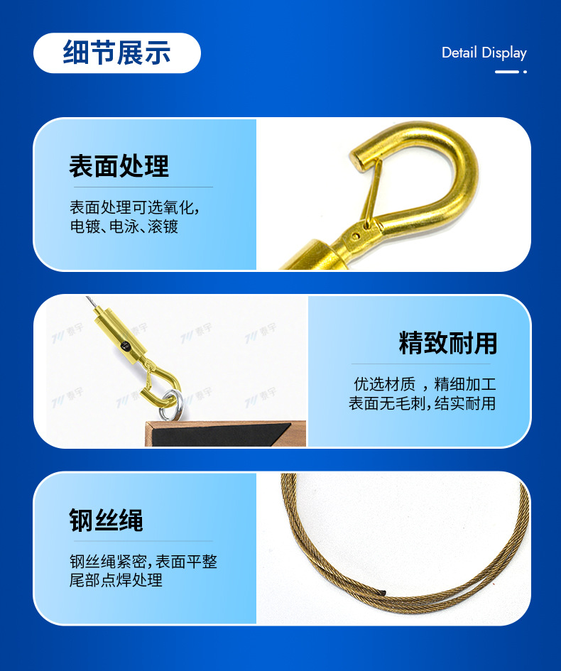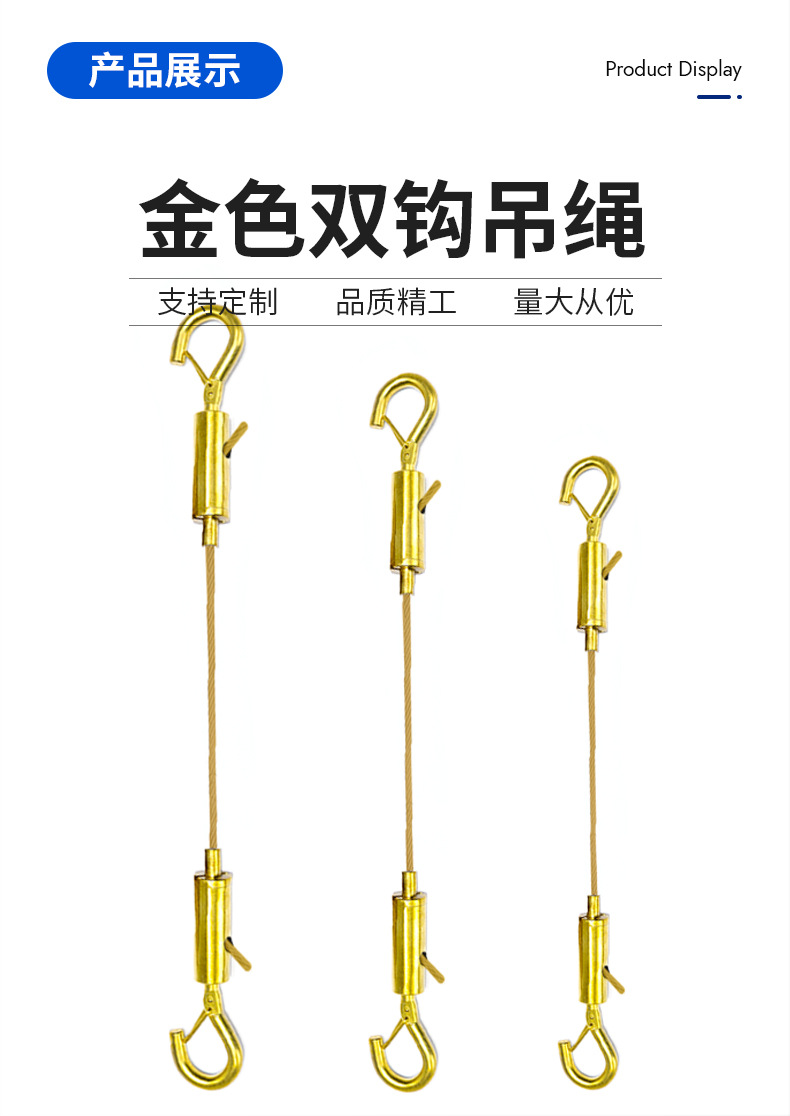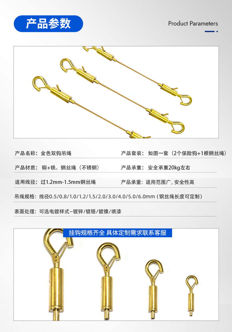 商品名称:钢丝绳保险钩金色吊钩吊灯镀锌弹簧扣可调节钢丝绳锁线钩灯饰配件