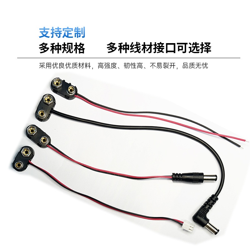 定制T型9v电池硬扣 玩具仪器连接线夹铜线端子接头塑壳9v电池卡扣