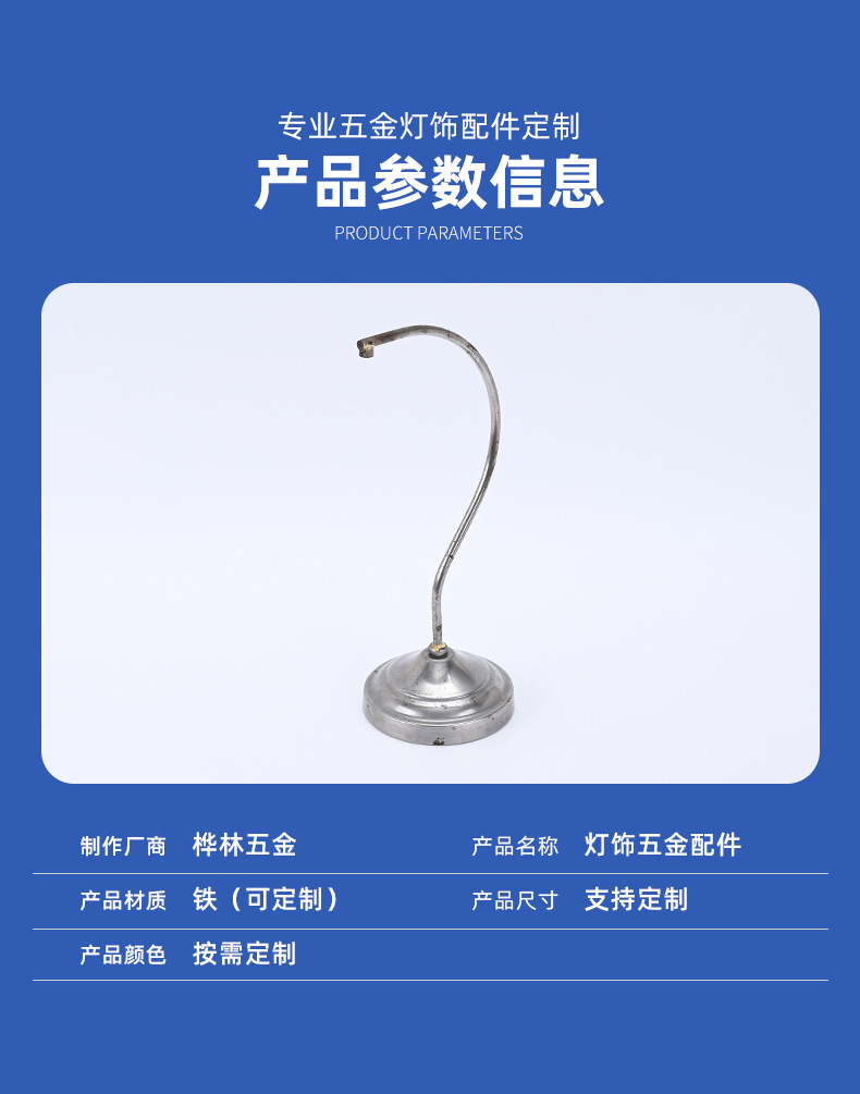 商品名称:香薰融蜡灯配件定制加工 金属底座弯管灯饰配件支撑杆工厂直供