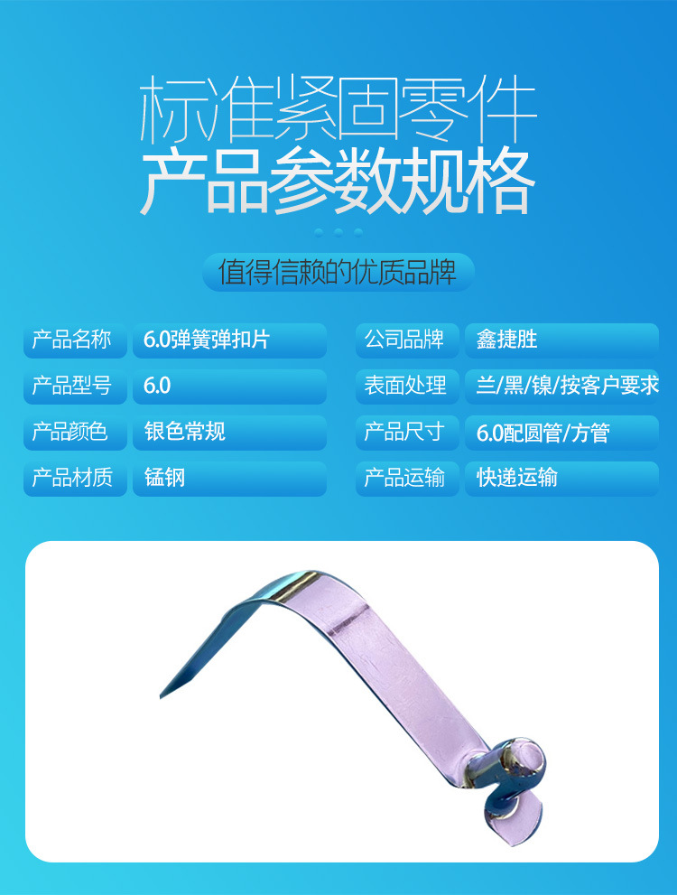 商品名称:弹扣 高弹性v型定位弹片卡扣 管内定位锰钢弹簧片弹扣卡口
