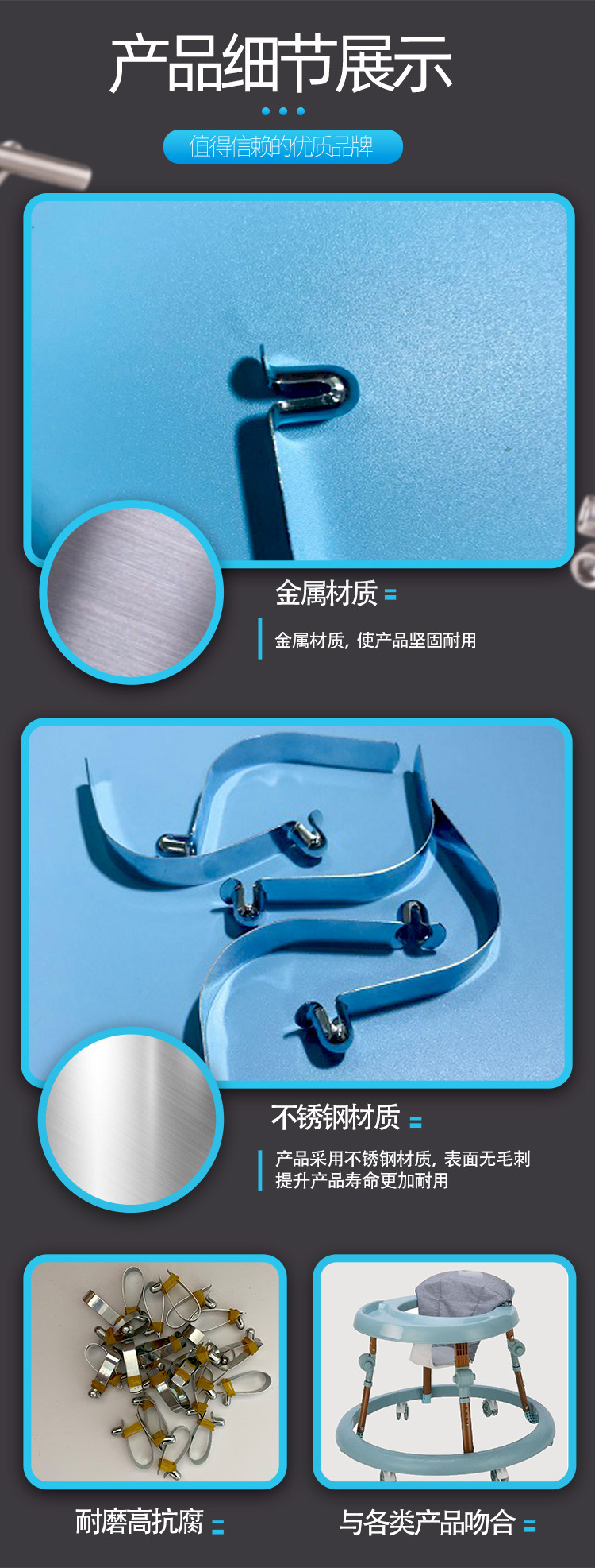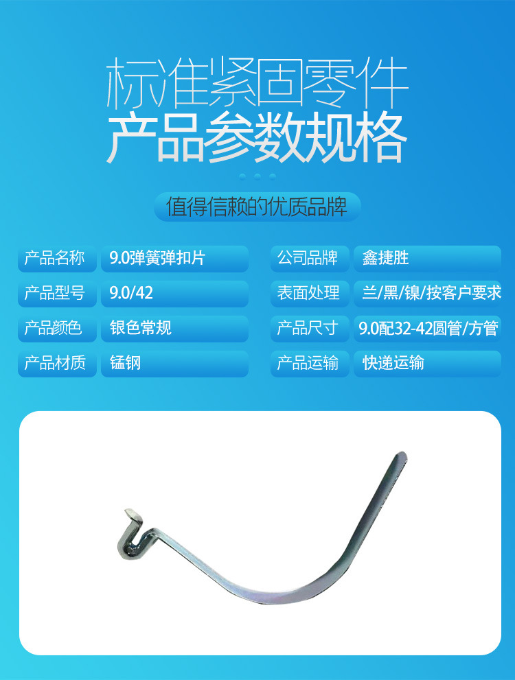 厂家4.5直径v型定位弹片卡扣管内锰钢弹簧片弹扣伸缩高弹性锰钢