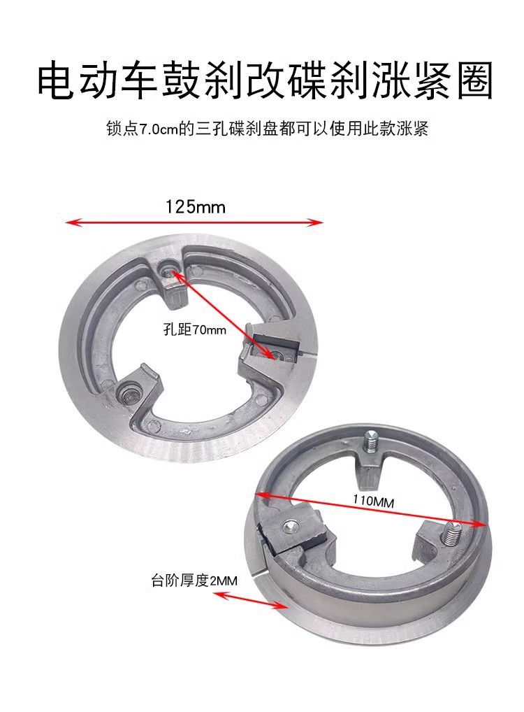 商品名称:电动车鼓刹改装碟刹车配件 110mm固定小龟福喜战速电机专用涨紧圈