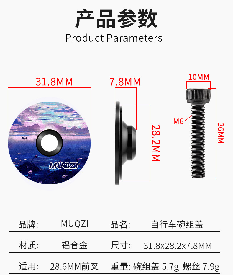 商品名称:MUQZI自行车碗组盖铝合金个性盖子山地公路车前叉上管盖顶盖把立