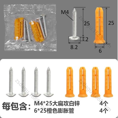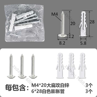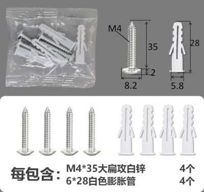 配件包大扁攻M4*20白锌白色膨胀管2+2件套