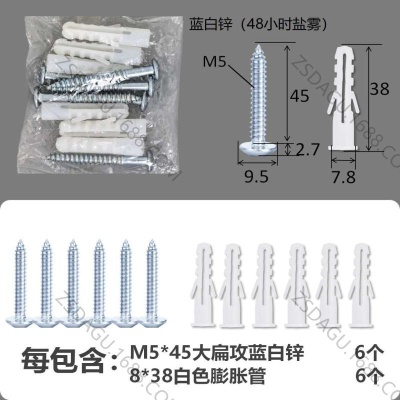 配件包大扁攻M5*40蓝白锌白色膨胀管6+6件套