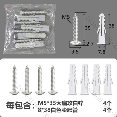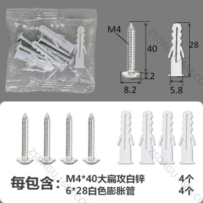 配件包大扁攻M4*16白锌白色膨胀管2+2件套