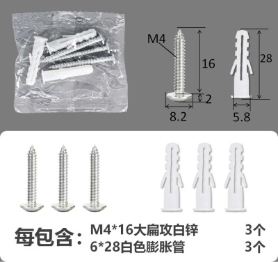 配件包大扁攻M4*16白锌白色膨胀管3+3件套