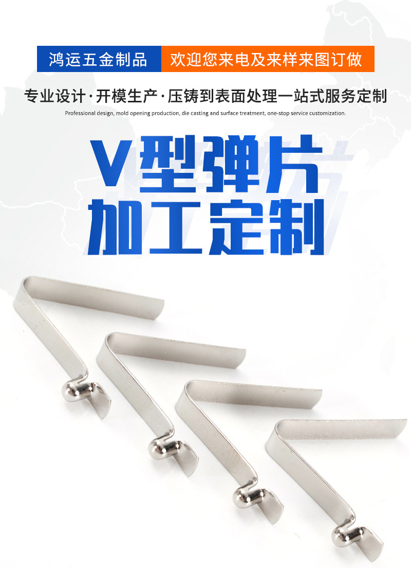 厂家直销V型弹片冲压弹簧片弹扣管内定位U型弹片卡扣空心双珠弹片