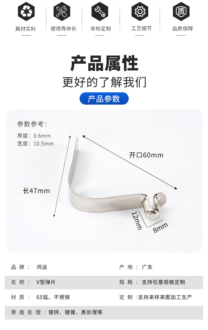 商品名称:8mm单珠空心V型弹片 管内定位卡扣冲压件不锈钢弹片U型弹扣弹簧片