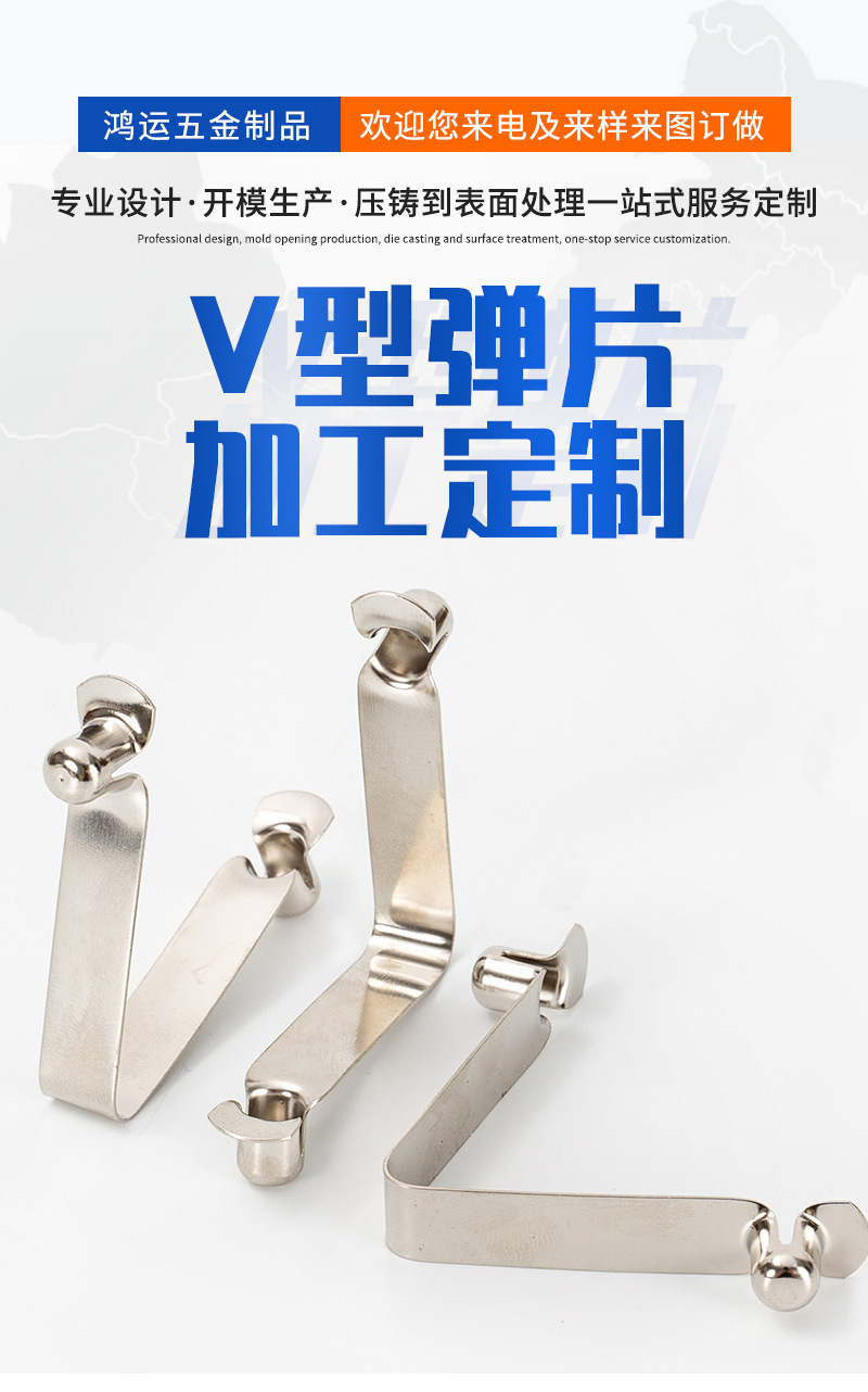 商品名称:厂家直销V型弹片冲压弹簧片弹扣管内定位U型弹片卡扣空心双珠弹片