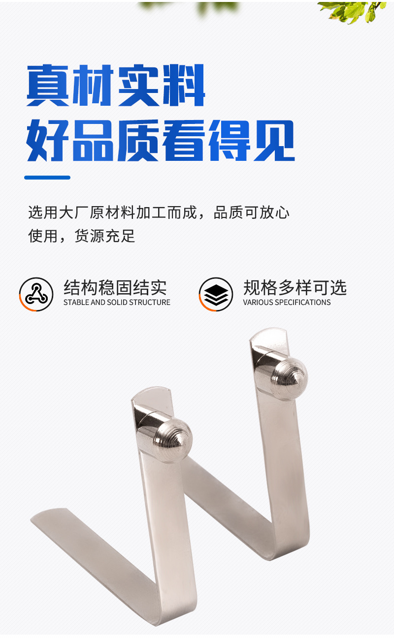 实心单珠V型弹簧片晾衣杆专用 管内定位弹片锰钢弹扣7.5x8x44mm