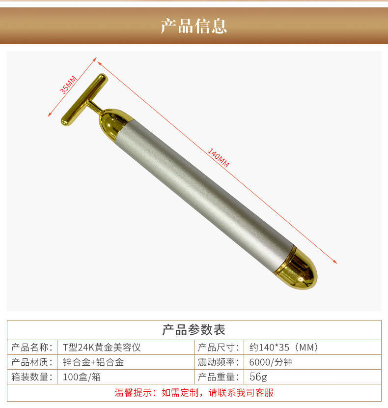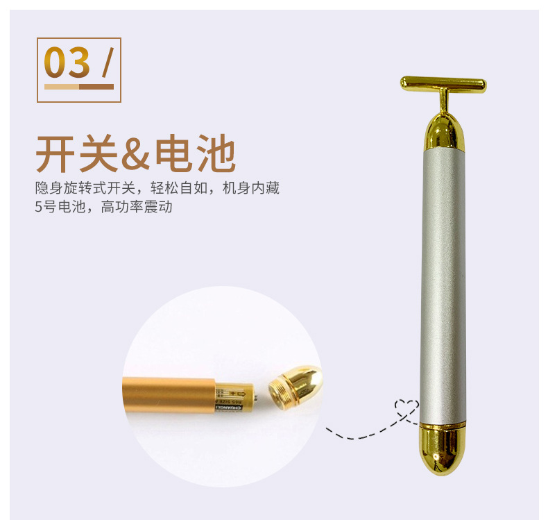 商品名称:美妆工具美容棒导入棒24K金色电动按摩脸部振动现货紧致